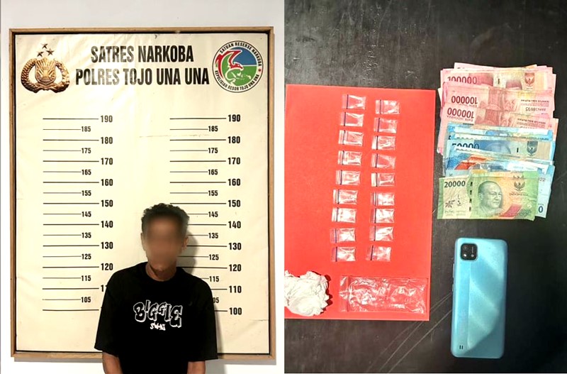 “Saat dilakukan penggeledahan yang disaksikan aparat desa, kami menemukan 18 paket siap edar. Tersangka tidak dapat mengelak dan langsung kami amankan ke Mako Polres Touna,” tegasnya.