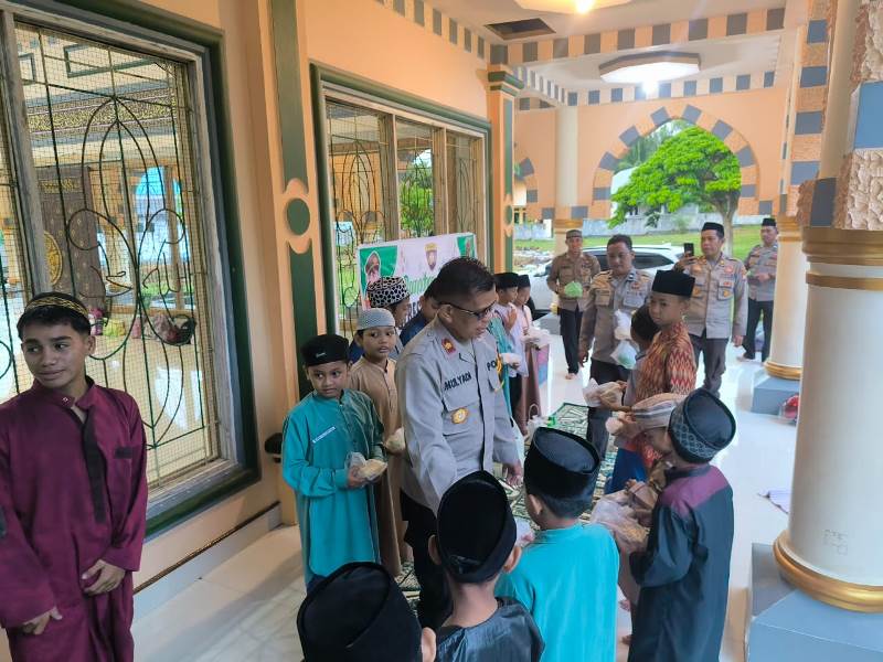 Ramadhan Berbagi, Polres Touna Bagikan Takjil kepada Santri Pondok Pesantren Al Fatah Ampana